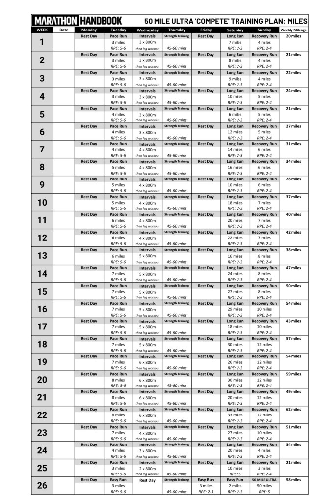 Here are two training programs I’ve used: Hal Higdon for marathons and ultra marathon handbook for my first 50 miler. IMO the thing with these types of cookie cutter training programs is that they are cookie cutter lol. These guys have tons of info on their websites too, but anything you have questions w or issues that come up before, during, or after training, hmu no doubt.