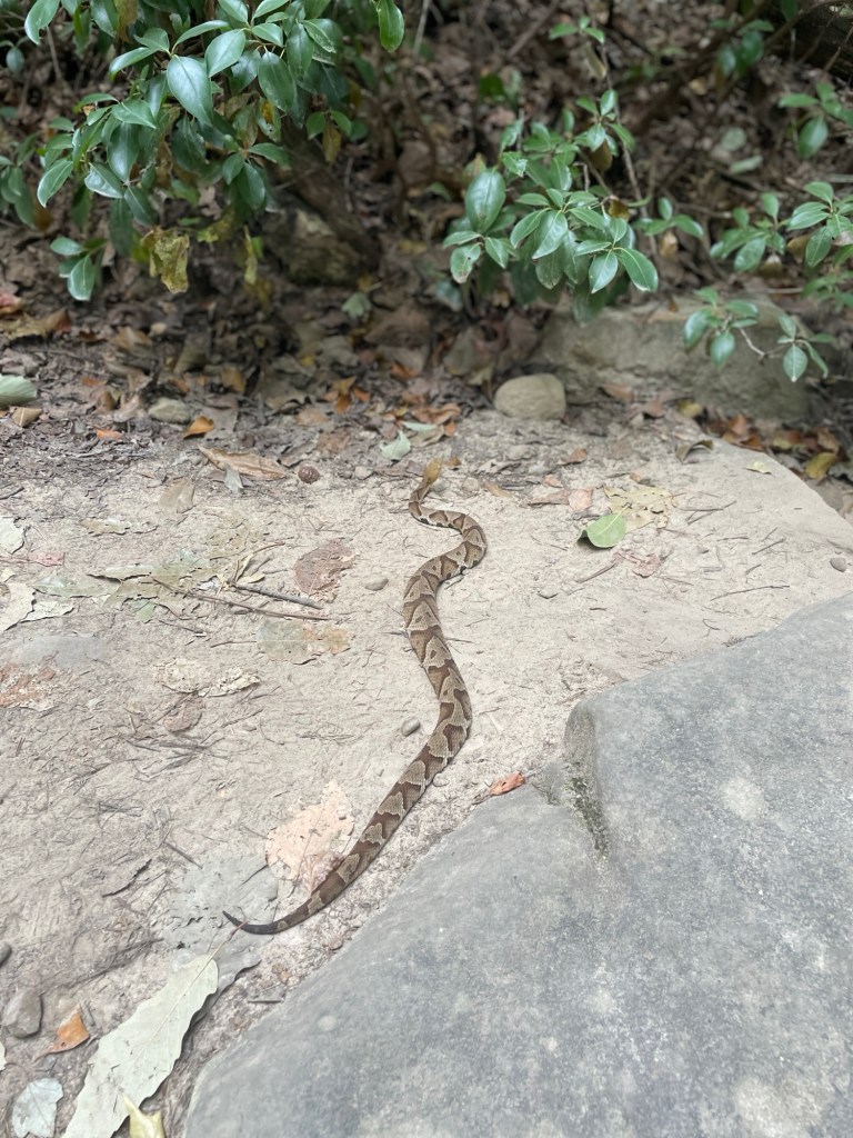 On my way back to camp; I stopped at the interpretive center. Mainly as practice because our next spot, I’ll need to stop in their interpretive center to get a permit. The second reason was to just check it out. I learned I crossed a copper head snake out on the trail yesterday