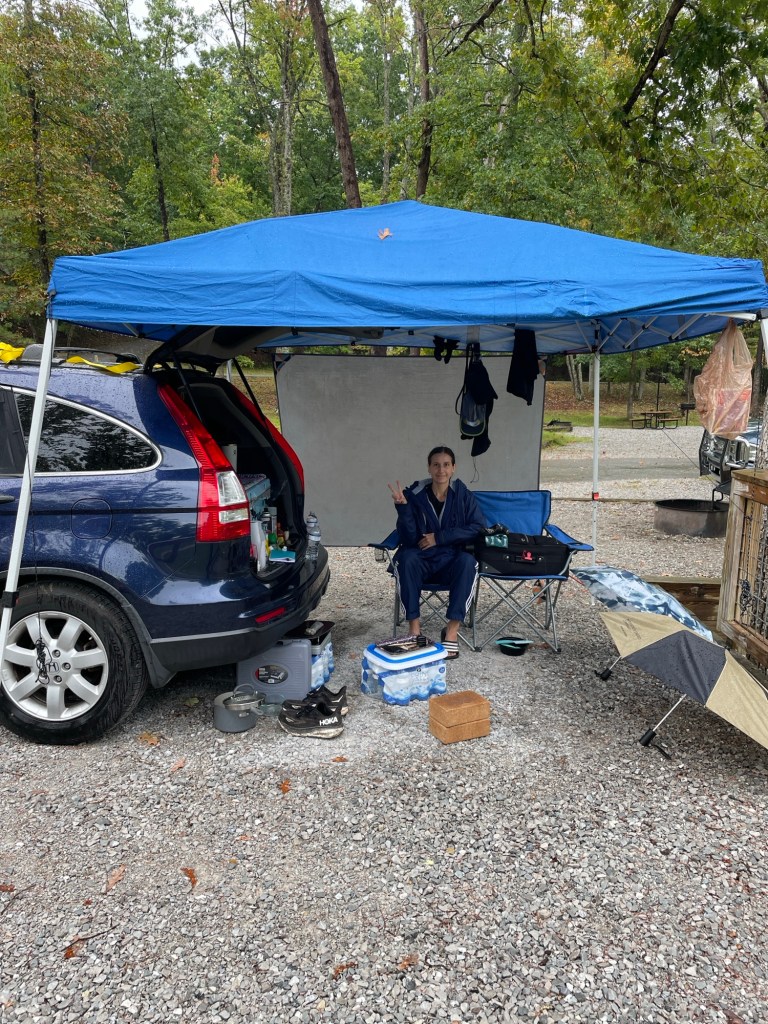 At night all of our shit is on the front seat, it’s not hard to get too but in the rain and rummaging through bags just doesn’t equal a fun time. So last night we had all our rain gear out, clothes for after my run, for after my shower, and a dirty pile for clothes that we needed to wash.
